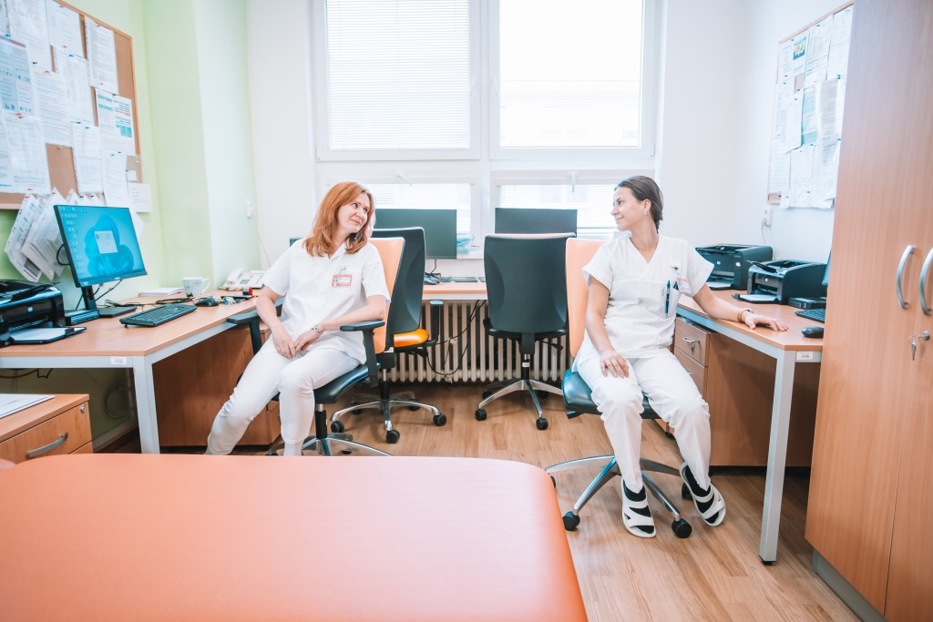 Pracoviště GERIATRIE A INTERNY má akreditaci v oboru geriatrie II. stupně a také akreditaci II. stupně v oboru vnitřní lékařství. Oddělení poskytuje péči na 61 standardních lůžkách a 21 lůžkách následné péče. Úzce spolupracujeme s dalšími internami – gastroenterologie, kardiologie a dialýza. Práce na oddělení je pestrá, zajímavá dobře zvládatelná v mladém přátelském kolektivu. Vždy se můžete spolehnout na pomoc kolegy, ať již školitele, nebo jakéhokoliv jiného v přátelské atmosféře.